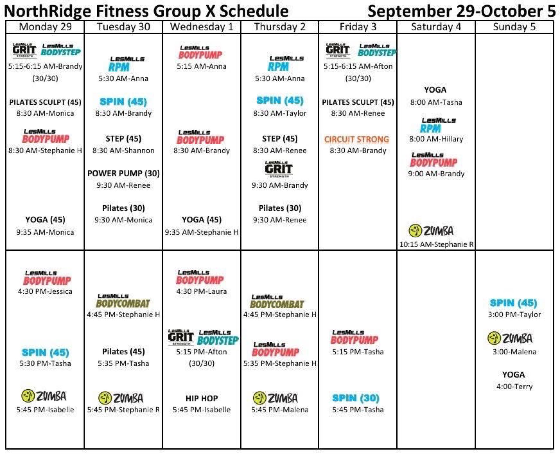 GROUP FITNESS SCHEDULE